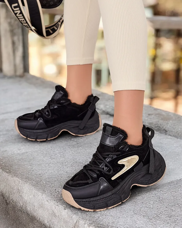 - Women's insulated sneaker sports shoes on a thicker sole. Lace-up upper made of suede ecological leather with eco leather elements. Soft fur inside. Super addition to your winter casual outfits!