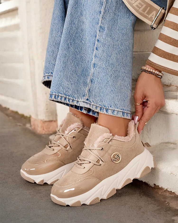 - Women's insulated sneaker sports shoes on a thicker sole. Lace-up upper made of organic suede leather. Soft fur inside. Super addition to your winter casual outfits!
