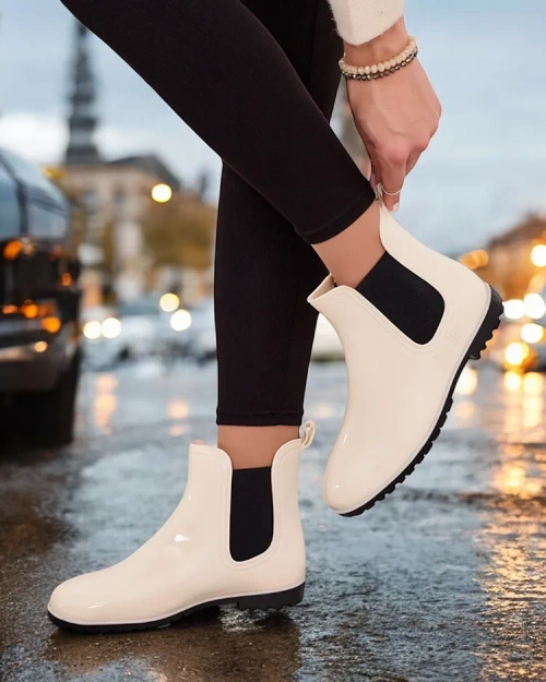 - Classic women's wellingtons made of rubber material with lacquered finish. The insole is fabric material. Footwear ideal for autumn rainy days!