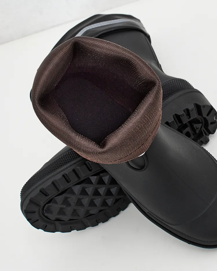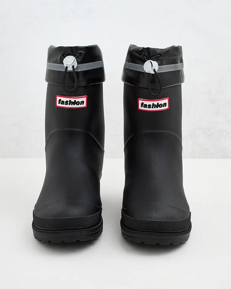 - Classic women's flat-heeled wellingtons made of rubber material. Inside the insole made of fabric. Perfect for autumn rainy days!