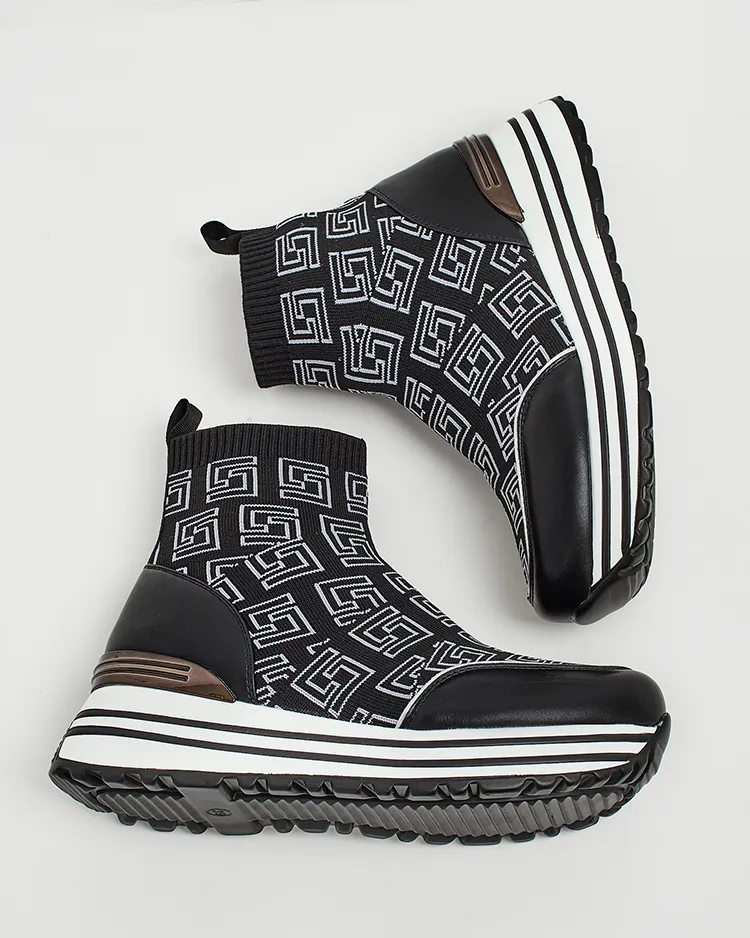 - Women's sneakers on a thicker sole - the perfect combination of style and comfort. Slip-on footwear, made of fabric. The model has a decorative print. A good choice for every day!