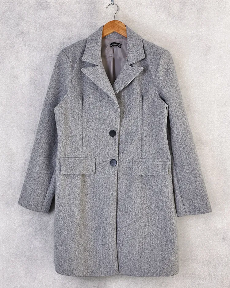 - Women's coat made of pleasant material. The model has long sleeves and a button closure. It has a lining. A perfect choice for autumn! NOTE: Measurement accuracy (+/-) 1 cm. Dimensions measured flat.