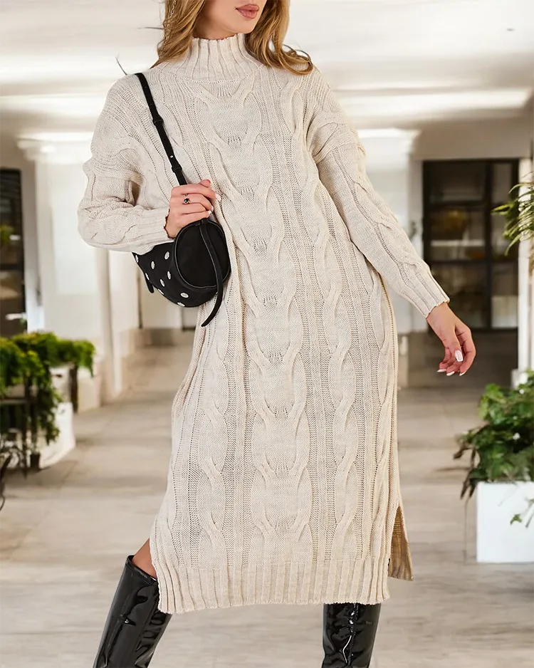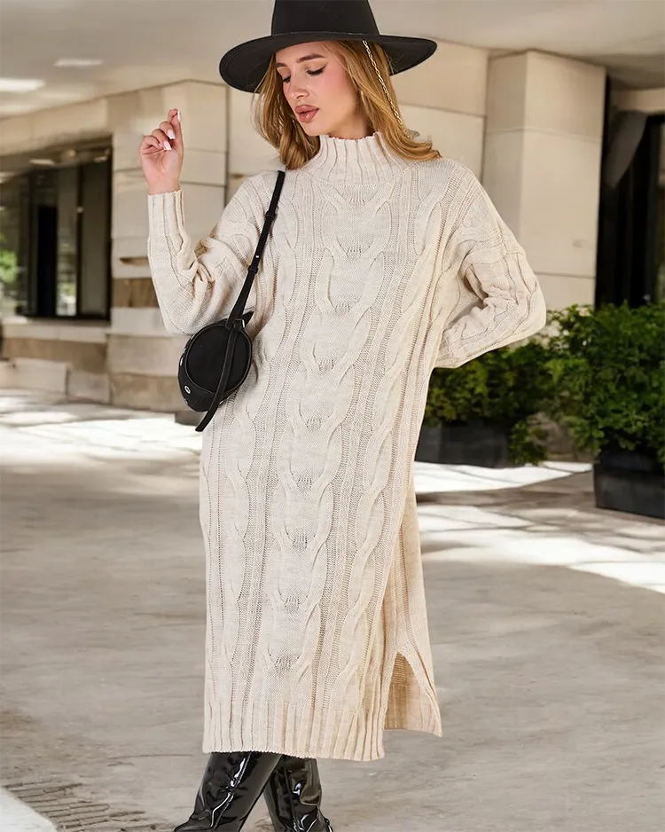 • Women's sweater dress with midi length and long sleeves with turtleneck. Must-have this season! ATTENTION: Measurement accuracy (+/-) 1 cm. Dimensions measured flat.