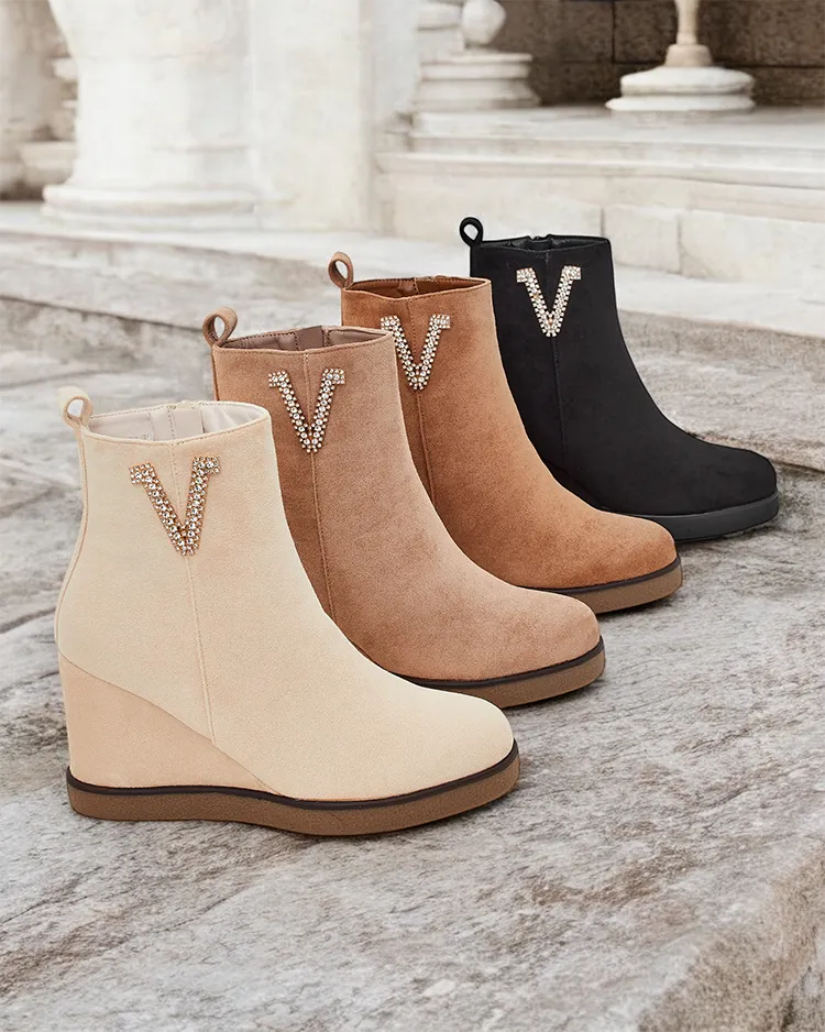 - Elegant women's boots on heels, made of eco-suede. Footwear filled with fur on the inside. A perfect choice for autumn!