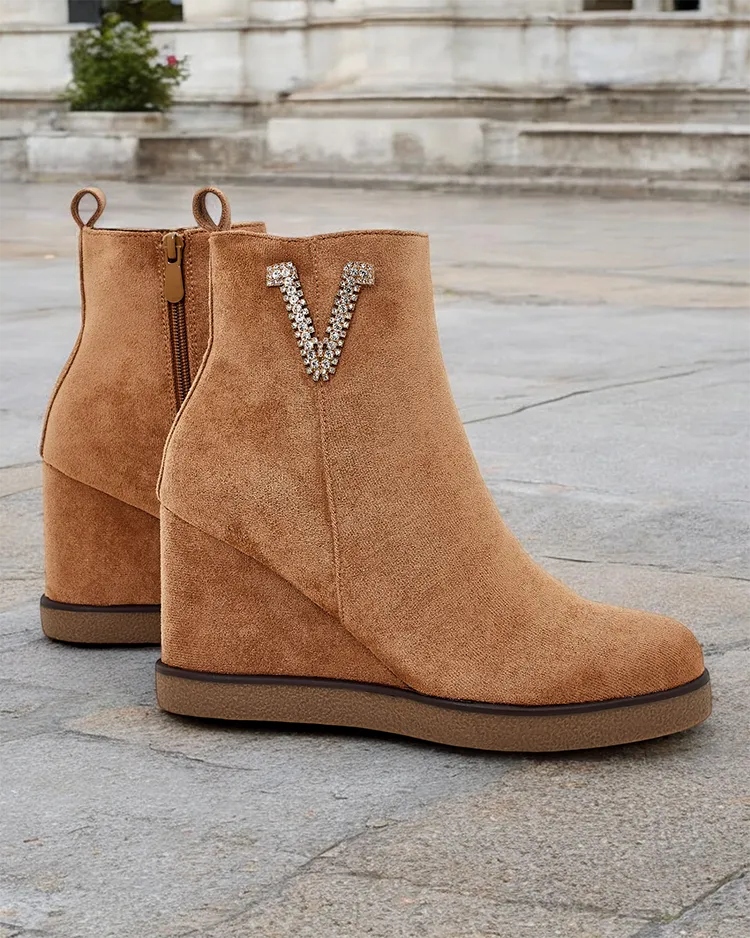 - Elegant women's boots on heels, made of eco-suede. Footwear filled with fur on the inside. A perfect choice for autumn!