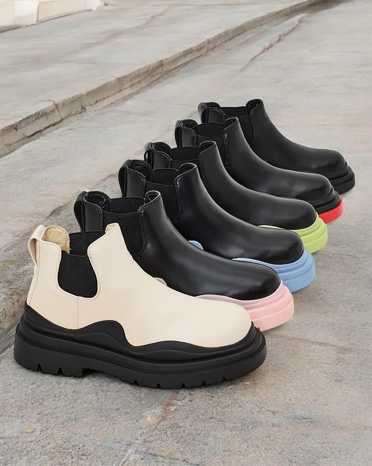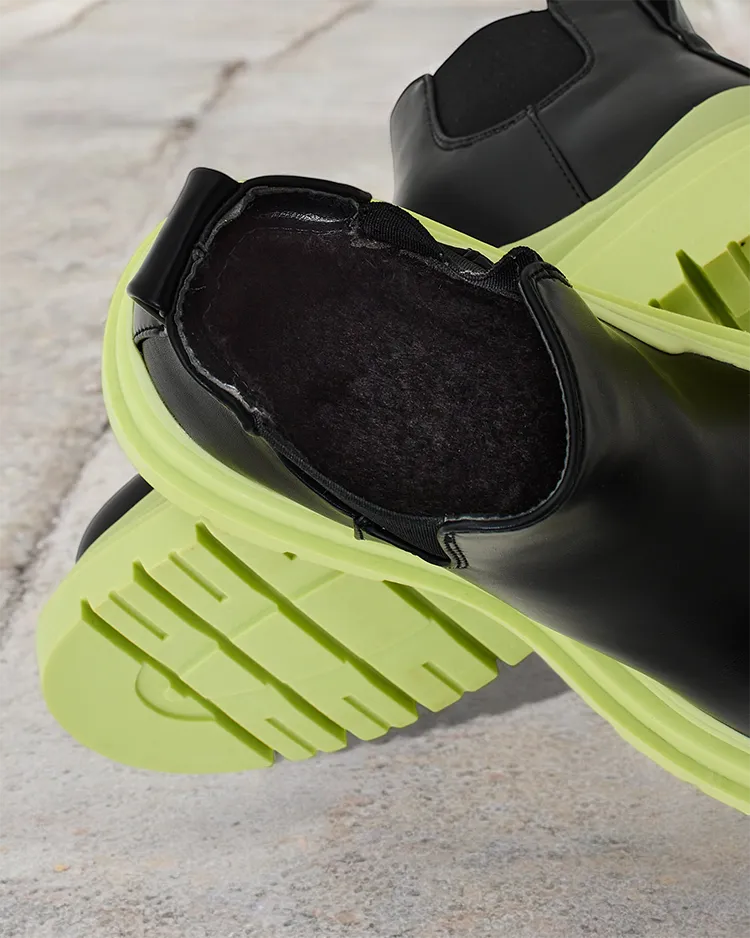 - Sensational women's boots on a flat sole, are made of eco leather. Interior with soft fur guarantees comfort and warmth even on colder days. Elastic inserts on the sides ensure a perfect fit!