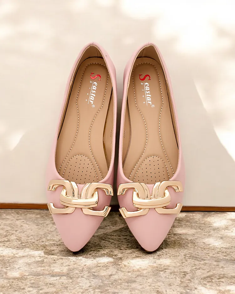 - Women's ballerina flats on a flat heel made entirely of eco leather. Tip pointed and decorated with a metal buckle. A great addition to your casual outfits!