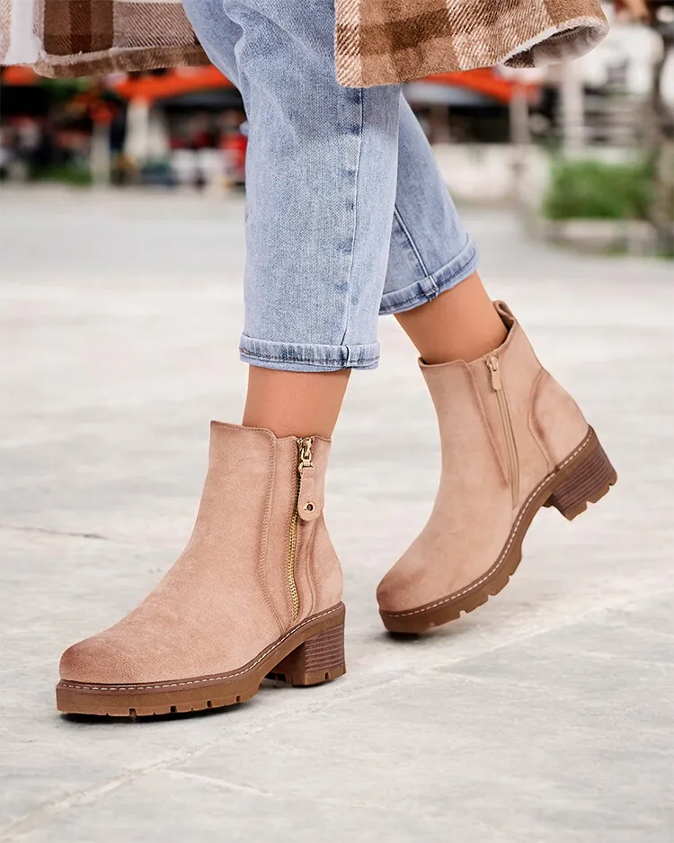 • Fabulous women's flat-heeled boots, zip fastening, made of suede eco leather. The interior with a soft lining guarantees comfort and warmth even on cooler days. The model has decorative zippers!
