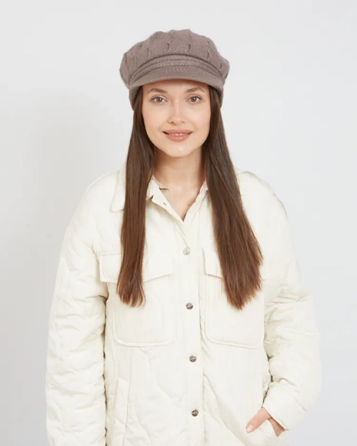 - Beautiful women's beret with visor made of pleasant to the touch material with a hint of glitter thread. Lined with delicate fur. A classic model that will perfectly complement autumn stylizations!