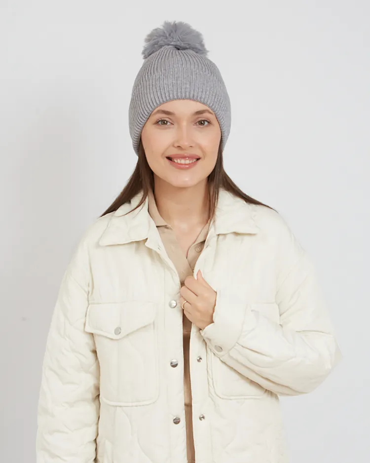 - Beautiful women's insulated winter hat. Model with a soft furry lining, adorned with a fluffy pom pom. Perfect for cold and wintery days!