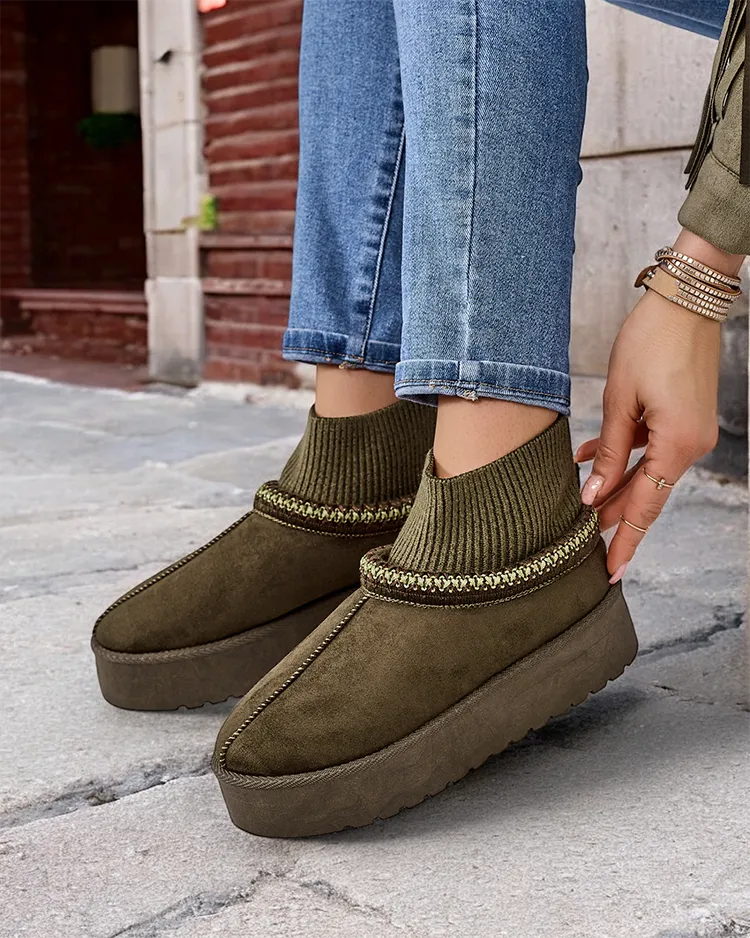 - Great women's winter snow boots on a platform. The upper is made of faux suede leather, lined with fur. An ideal base for winter!