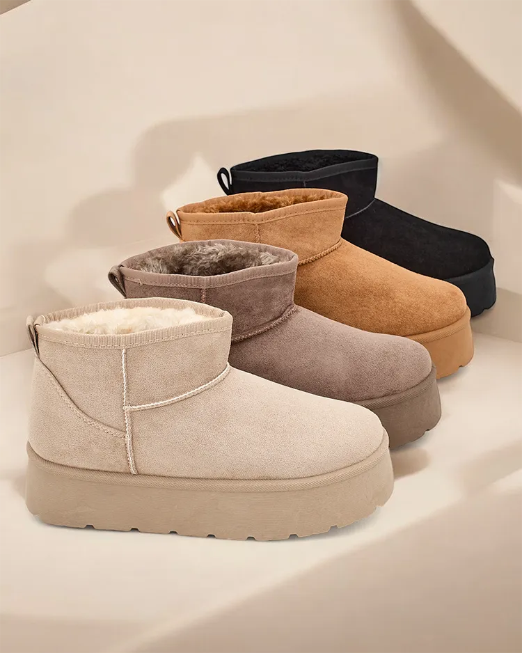 - Great women's winter snow boots on a platform. The upper is made of suede synthetic leather, the inside is lined with fur. Perfect base for winter!