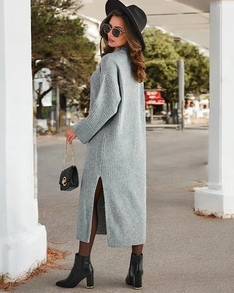 - Women's midi sweater dress with long sleeves. Model made of knit fabric. Must-have this season! NOTE: Measurement accuracy (+/-) 1 cm. Dimensions measured flat.
