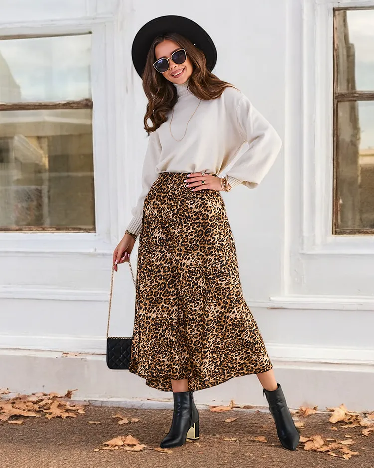 - Women's midi skirt made of soft fabric like satin. The model has an elastic waistband and decorative print. An ideal base for many unique outfits! NOTE: Measurement accuracy (+/-) 1 cm.