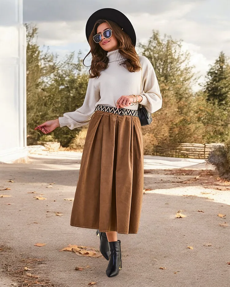 Royalfashion Women's corduroy midi skirt