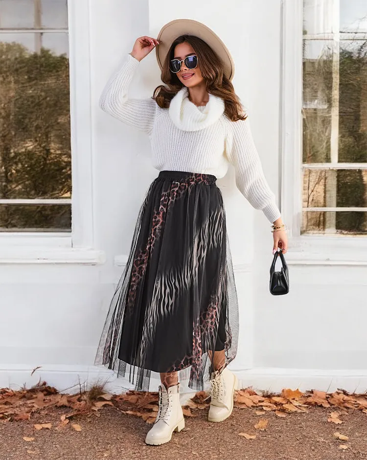 • Tulle midi skirt for women made of light fabric. Model with lining, stretchy elastic waistband. The skirt will be great for autumn! NOTE: Measurement accuracy (+/-) 1 cm.