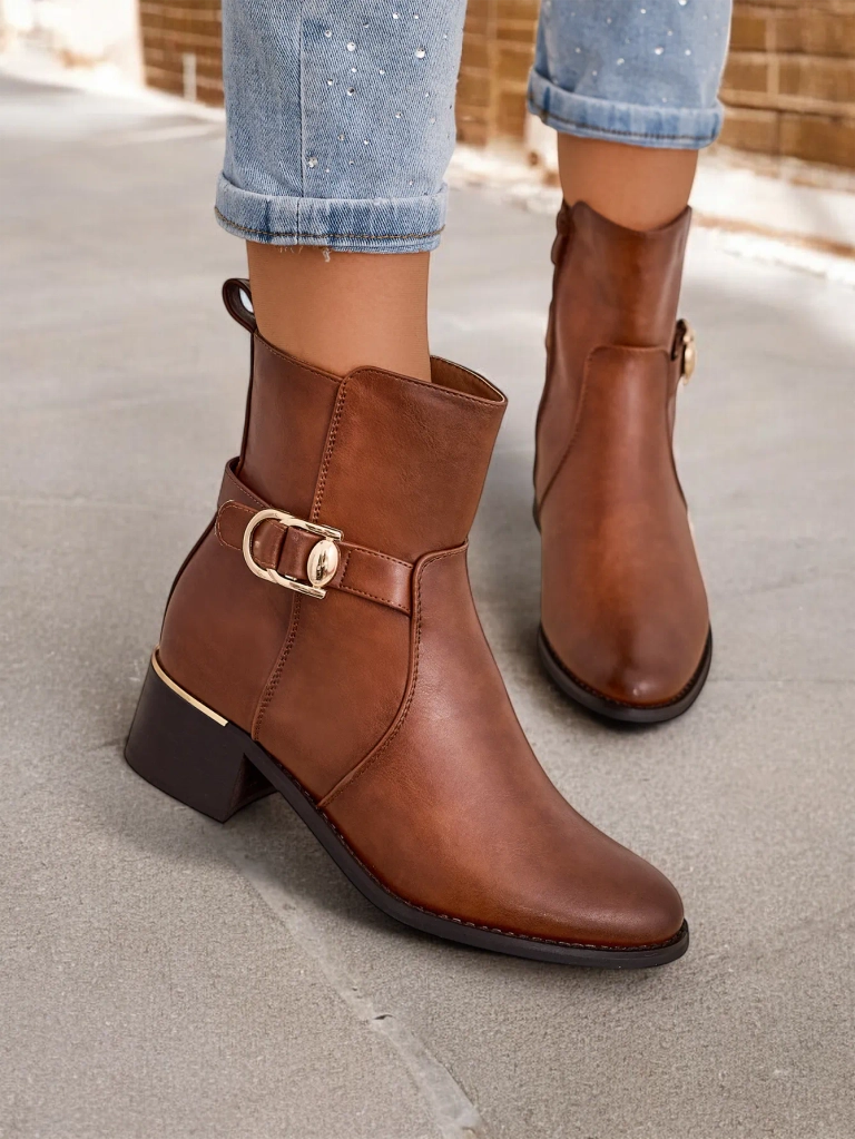 • Fabulous women's low-heeled boots made of eco-leather. The interior is made of delicate fur. The model is fastened with a zipper and has an embellished upper. Perfect for autumn outfits!