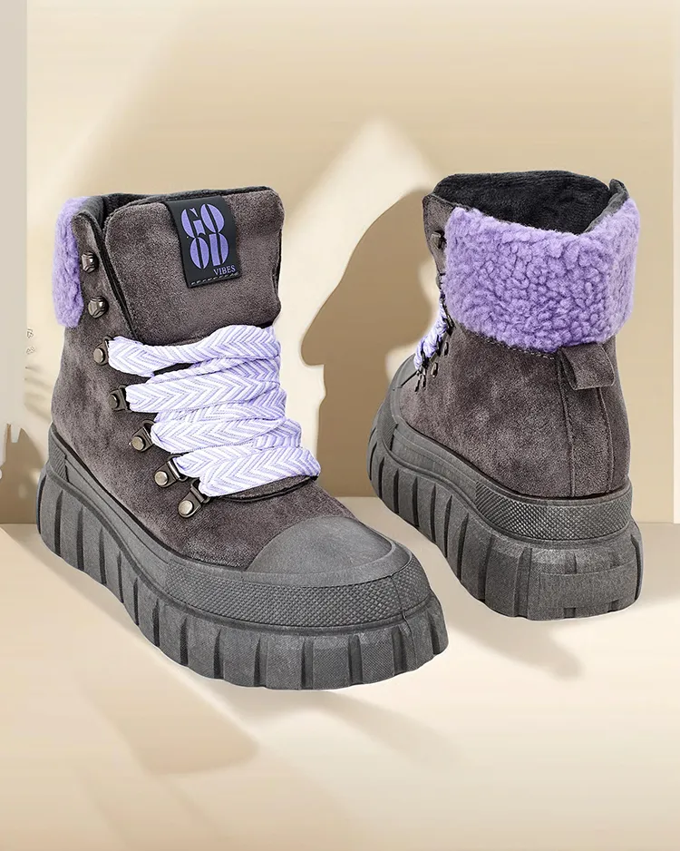 - Women's trekking trapery with laced upper. The material is made of suede eco leather. The inside of the shoes is insulated with fur. Perfect for winter time!