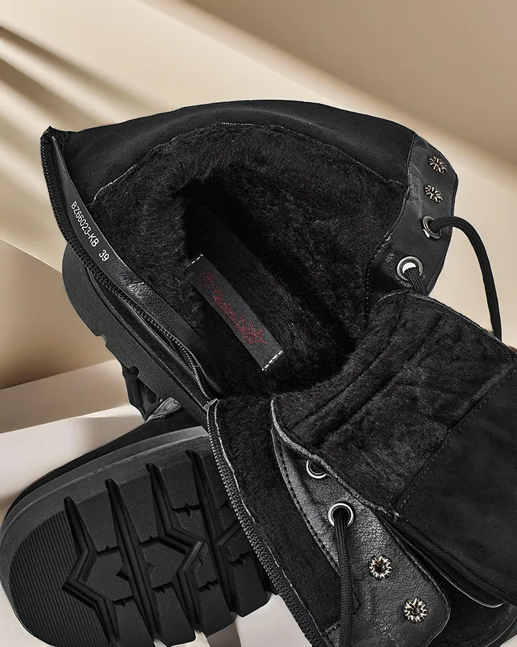 - Women's workery ankle boots are exceptional footwear combining style and comfort. Made of ecological suede leather and filled with delicate fur. Model laced and closed with a zipper.