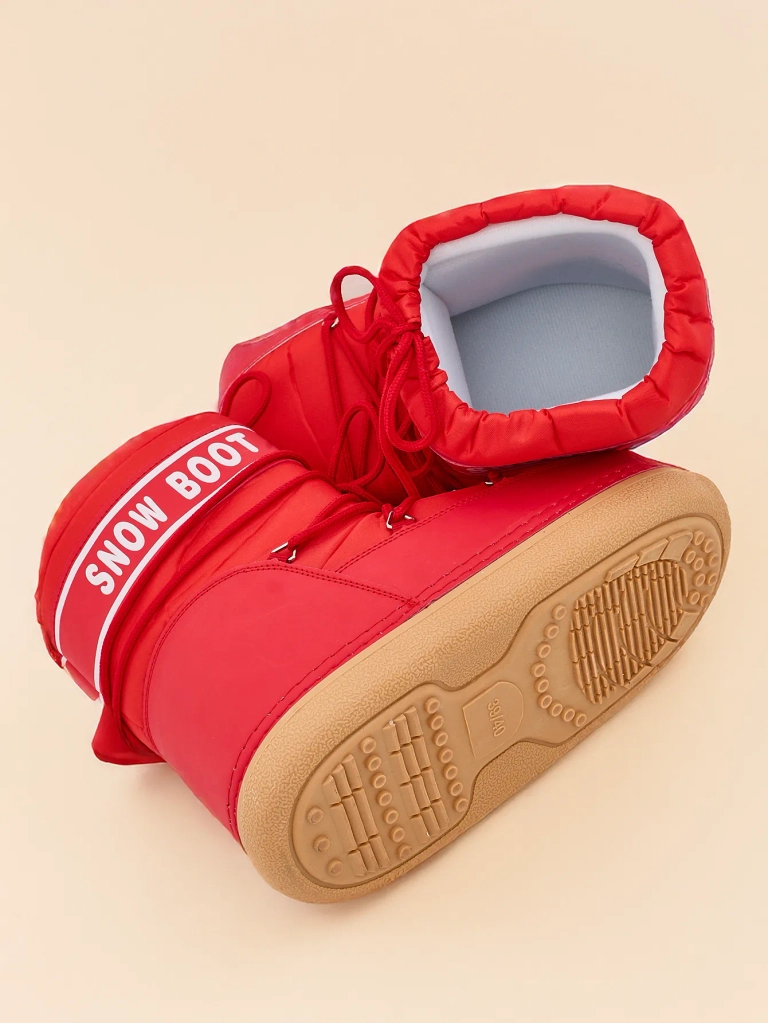 - Women's snow boots with a cuff made of a combination of eco-leather and quilted fabric material. Lined with fabric inside, slip-on and lace-up shoes, has a cuff.