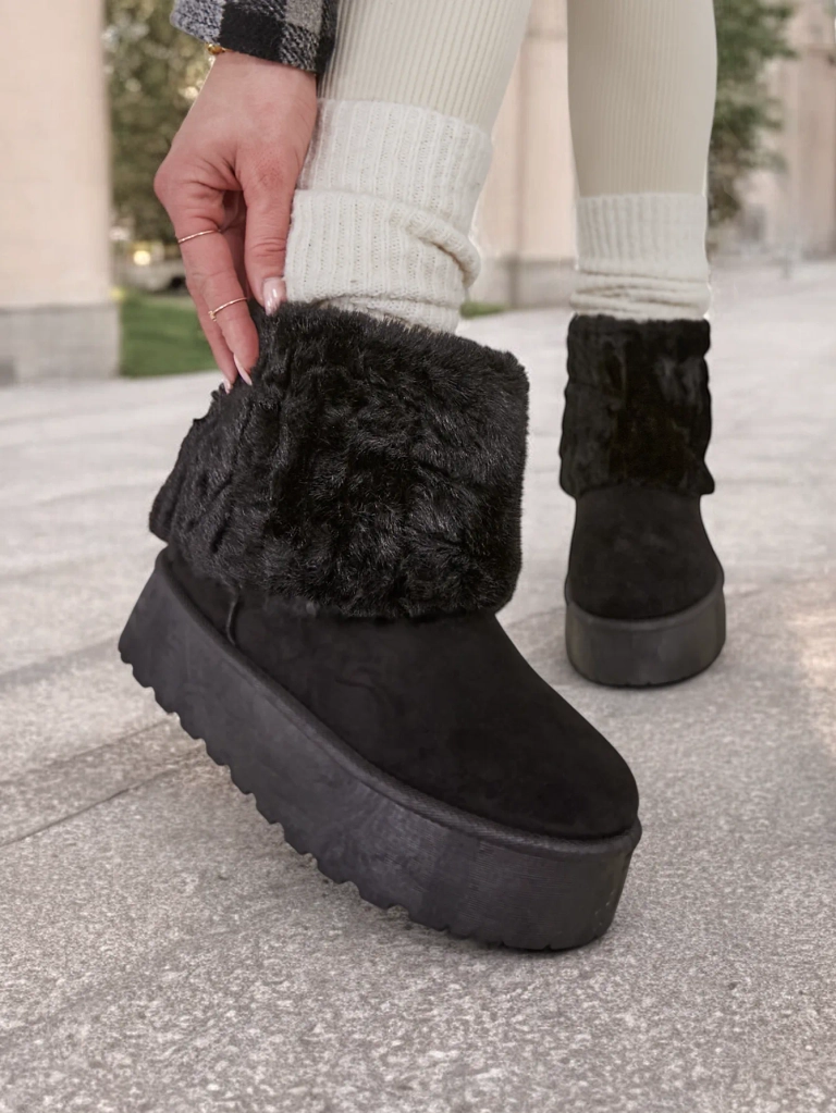 - Women's snow boots with a shaft made of a combination of eco leather and a pleasant fur. Inside, there is fur lining, the shoes have a slip-on shaft. Perfect for winter!