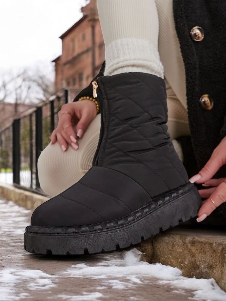 • Women's snow boots with a shaft made of material similar to cerata. Inside lined with faux fur, the boots have a zipper closure in the middle. Perfect for colder seasons!
