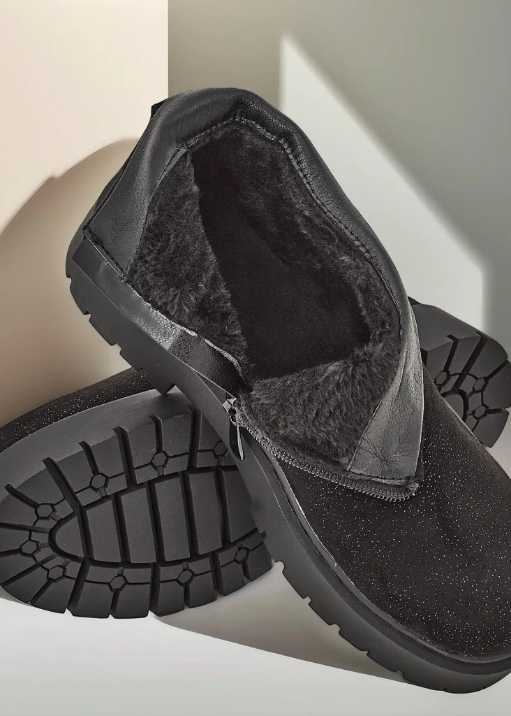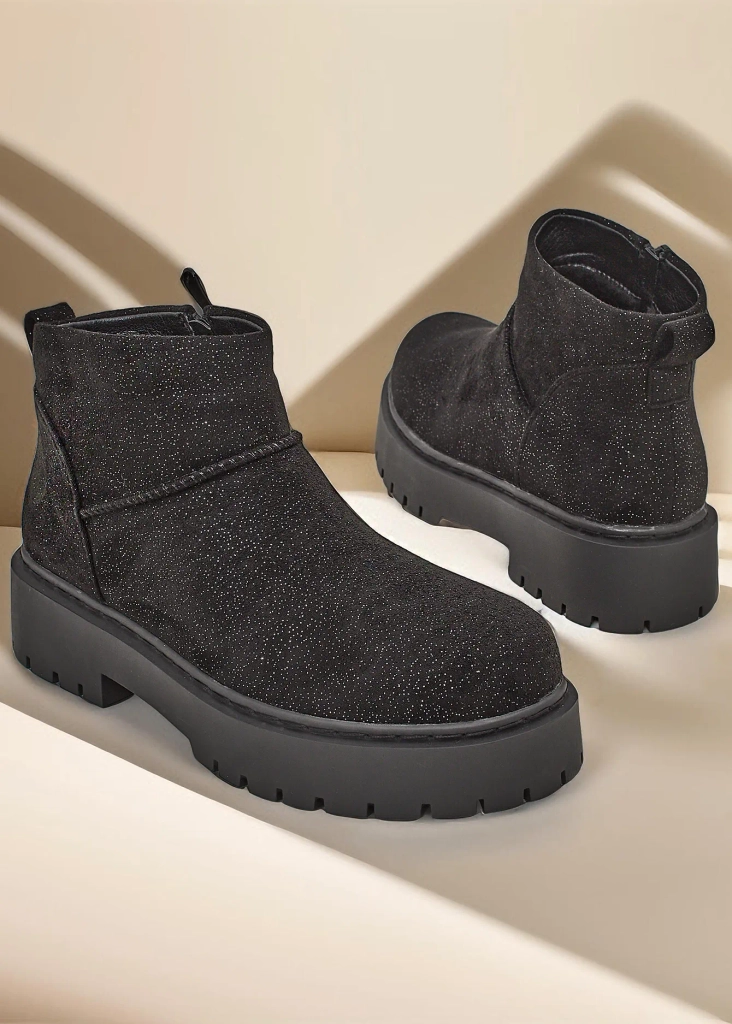 • Great women's winter snow boots on a platform. The upper is made of eco-suede leather with added glitter thread, the inside is lined with a cozy fur. Perfect base for winter!