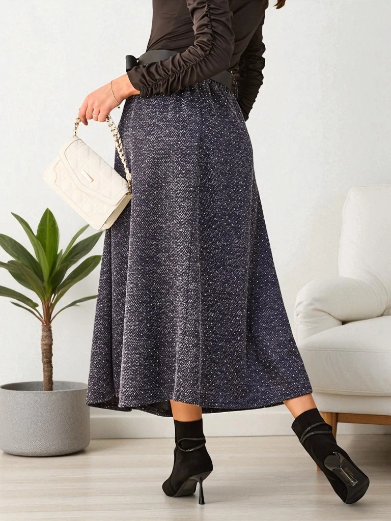 - Women's midi skirt made of soft fabric. The model has 2 pockets and a belt included. Perfect base for many unique outfits! NOTE: Measurement accuracy (+/-) 1 cm.