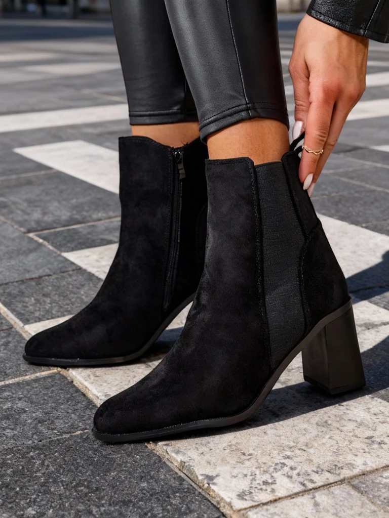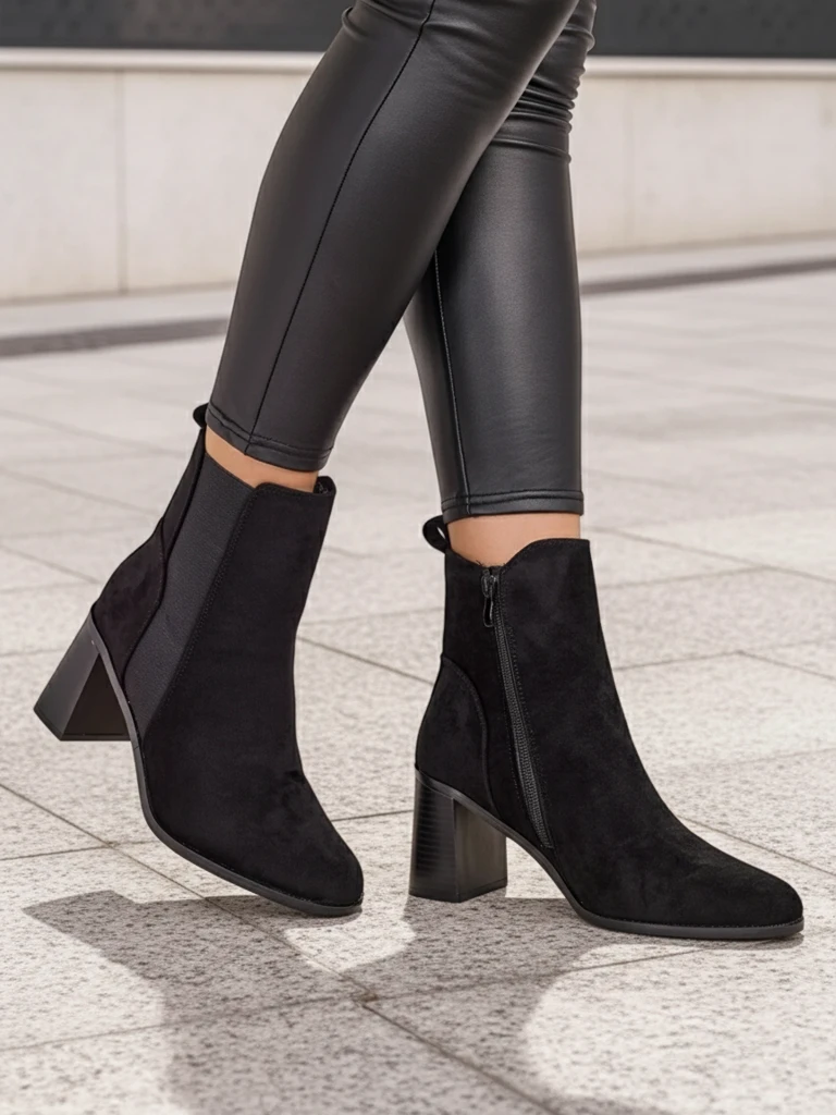 - Women's ankle boots are the perfect solution for colder days. The eco-suede upper is fastened with a zipper, and inside there is an eco-leather insole. Heeled model, with a round toe. A great addition to your casual outfits!