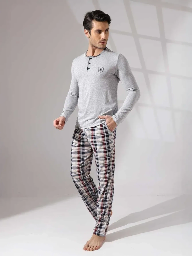 • Elegant men's pajamas with a unique print and checkered pants. Made of high quality cotton, it guarantees a comfortable sleep and stylish look. ATTENTION: Measurement accuracy (+/-) 1 cm.