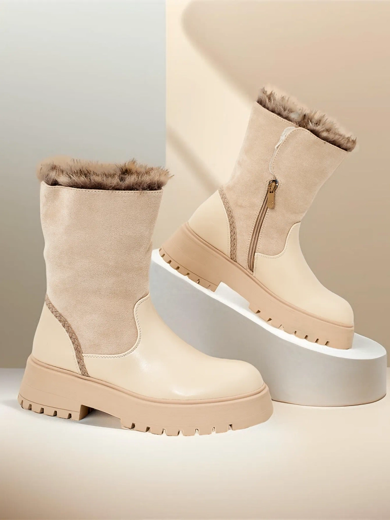 - Fabulous women's flat heel boots, made of a combination of eco leather and suede eco leather. The interior with delicate fur guarantees comfort and warmth even on cooler days. The zipper closure ensures a perfect fit!