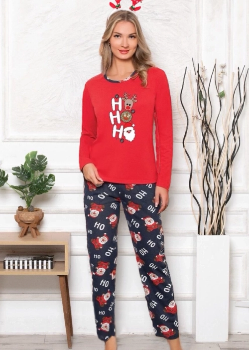 • Women's 2-piece pajama with long sleeves and long pants made of cotton material. The model is decorated with a print. Perfect for home evenings! NOTE: Measurement accuracy (+/-) 1 cm.