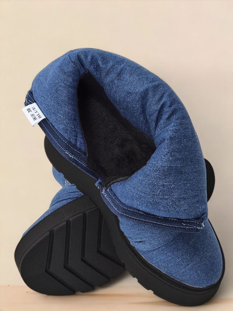 • Women's snow boots made from a combination of fabric and suede eco-leather. Wedge heel boots. Delicate insulation on the inside. The model features elegant embellishments on the upper. Perfect for cooler days.