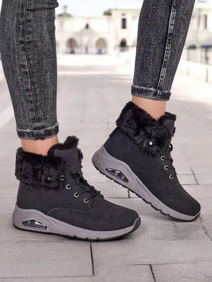 - Women's insulated sports shoes in the style of sneakers on a comfortable sole. The laced upper is made of eco-friendly leather. Soft fur inside. A great addition to your winter casual outfits!