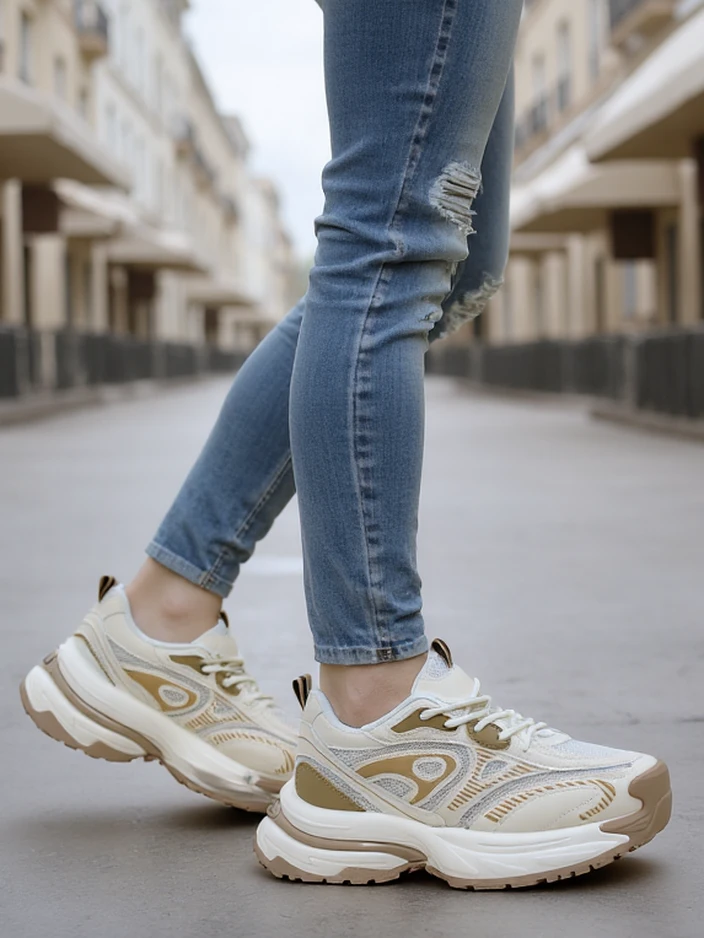 • Women's sports shoes in the form of platform sneakers. Made of eco-leather and fabric. A great addition to your daily casual outfits!
