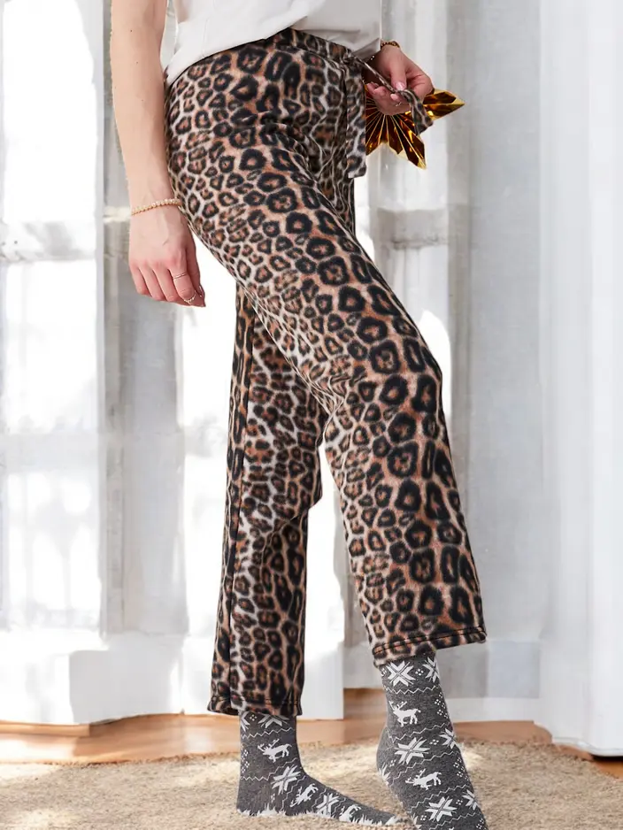 - Women's fabric pants made of soft cotton material. A model with a straight cut, featuring an elastic waistband with drawstrings. Perfect for cozy evenings at home! NOTE: Measurement accuracy (+/-) 1 cm.