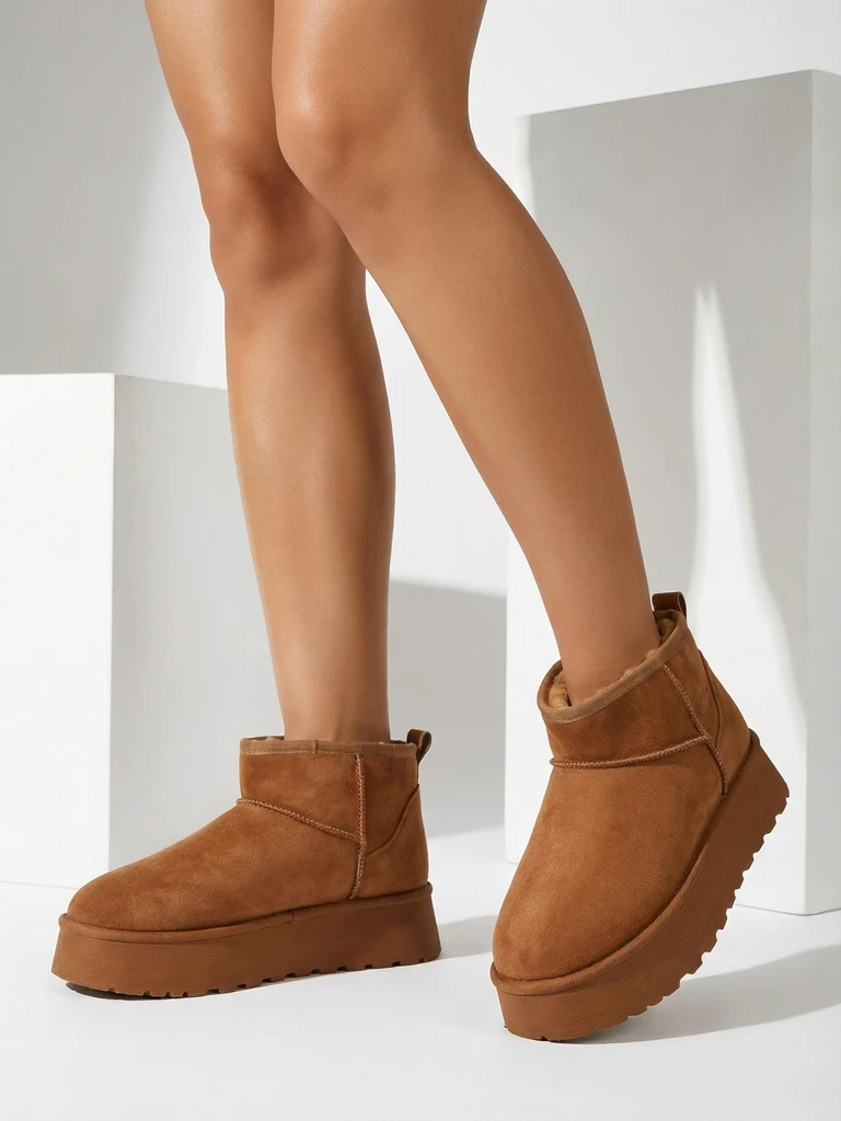 • Great women's winter boots in snow boot style on a platform. The upper is made of faux suede leather, and the interior is insulated with fur. An ideal base for winter!