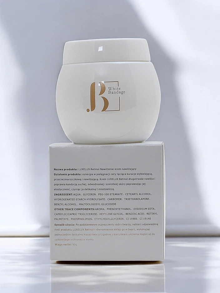 - LUXELUX Retinol Moisturization - a cream combining brightening, anti-wrinkle, and moisturizing properties. Provides long-lasting hydration, improves elasticity, and the condition of dry and rough skin, making it soft and youthful.