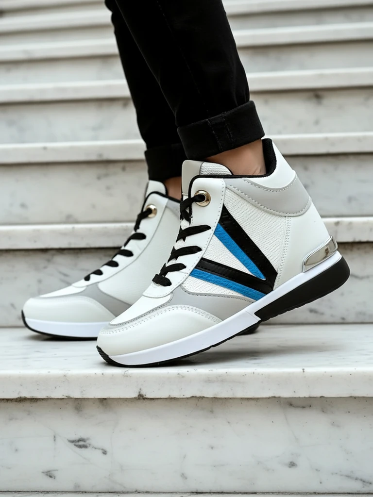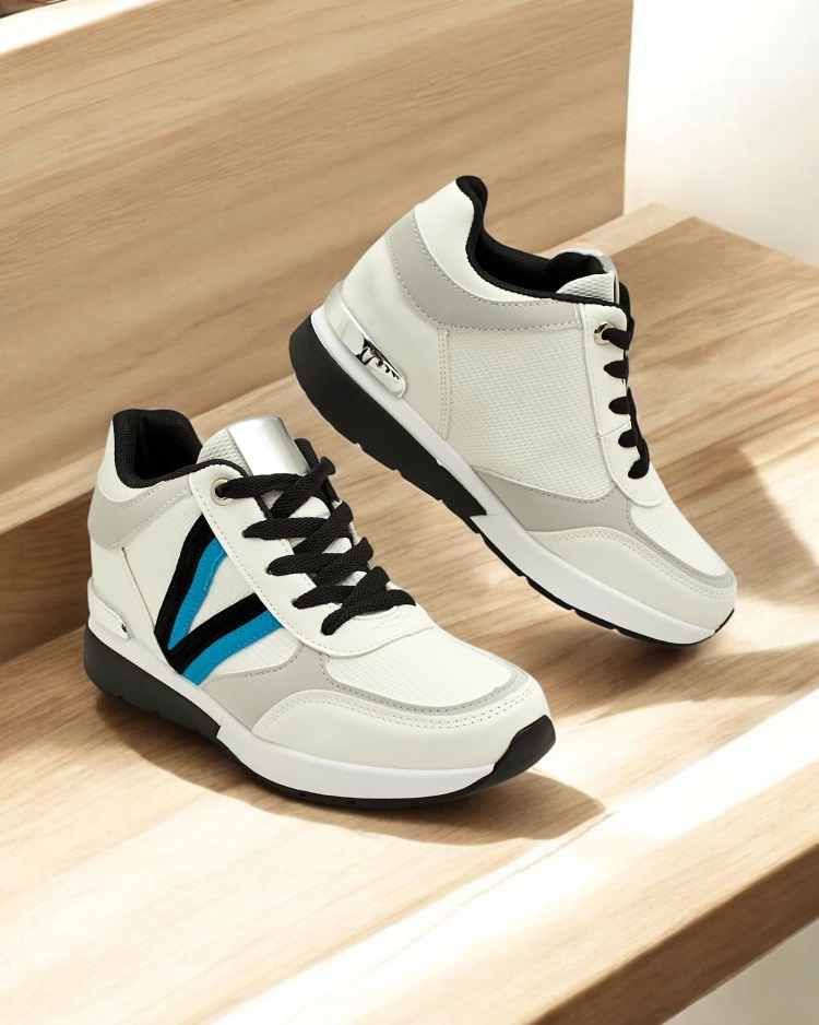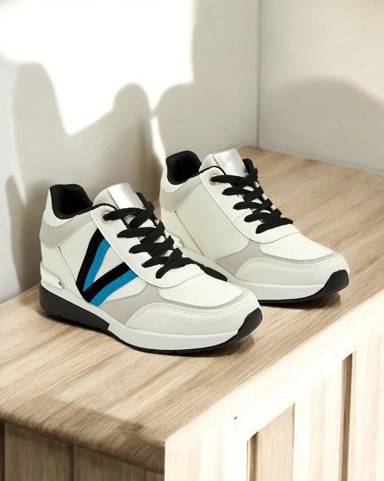 - Comfortable women's sports shoes with a hidden wedge heel, made of eco-leather. The model is laced, with a fabric insole. The flexible upper easily adapts to the foot. A super stylish addition!
