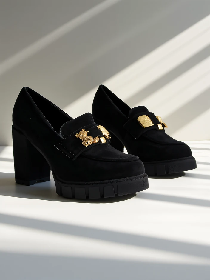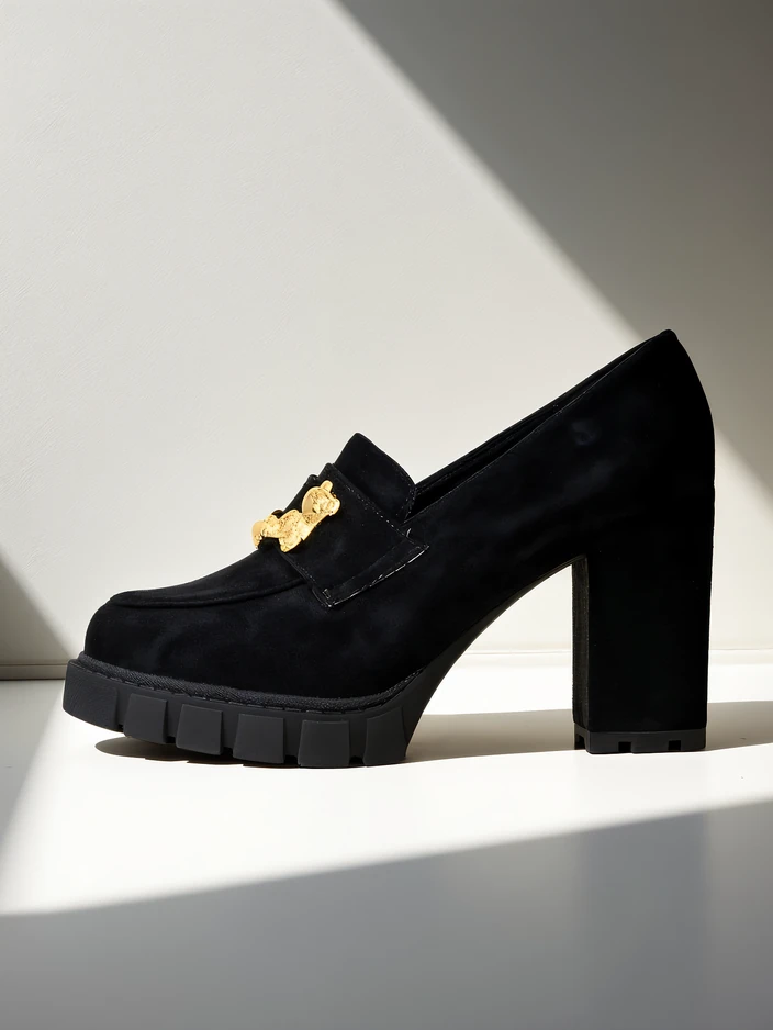 Stunning Black Suede Block Heel Shoes Elegant and Fashionable