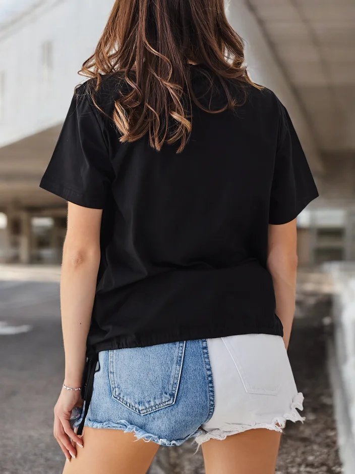 - Original women's blouse with a round neckline, made from soft and pleasant-to-touch fabric. The whole piece is adorned with a subtle inscription, and the short sleeve adds lightness. An excellent choice for creating fashionable and stylish outfits!