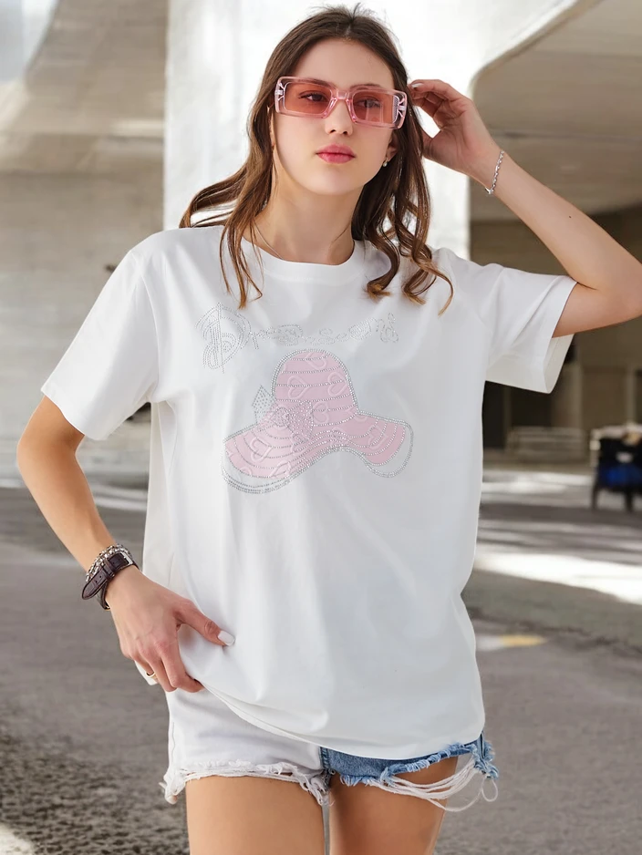 - Original women's blouse with a round neckline, made of soft and pleasant-to-the-touch fabric. The whole piece is adorned with an eye-catching print, and the short sleeve adds lightness. A perfect choice for creating fashionable and stylish outfits!