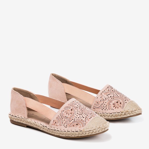 - Comfortable shoes with an open toe made of eco chamois leather. Cutouts and decorative rhinestones on the nose. Shoes stylized as espadrilles. Perfect for everyday use. The sole is decorated with a jute string. Perfect for warmer days!