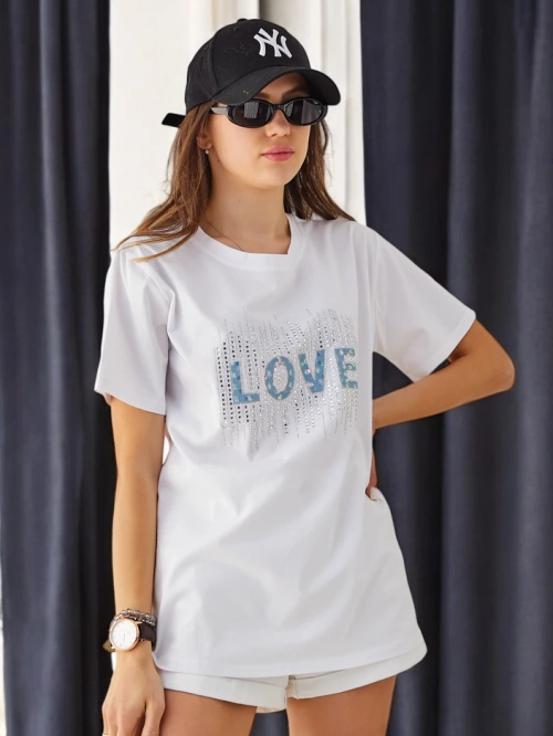 Royalfashion Women's Cotton T-shirt LOVE with rhinestones