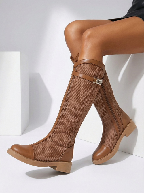 - Unique women's ankle boots made of mesh-like fabric and eco-leather with a perforated finish and eco-leather insole. Model fastened with a zipper. Perfect for autumn outfits!