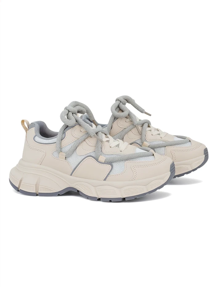 - Women's sports shoes made of eco-leather and mesh. Model with a thicker sole. Laced upper. They will fit perfectly with everyday outfits!