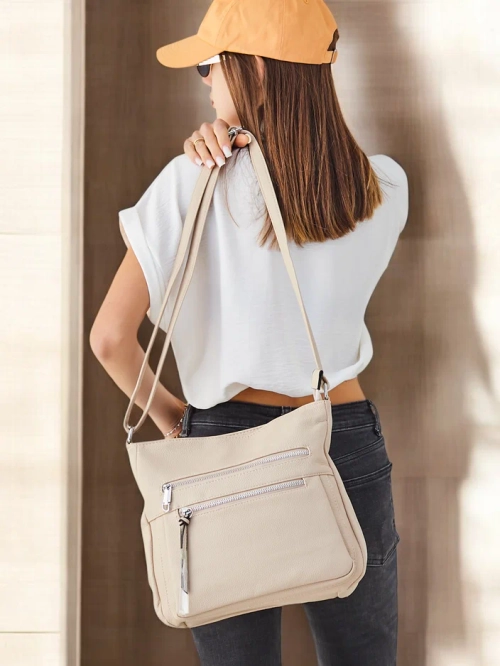 - Women's handbag with a zipper, made of eco-leather. The model has 1 compartment, 3 internal pockets, and 3 external pockets. Additionally, it features a detachable, adjustable strap. Perfect for everyday use!