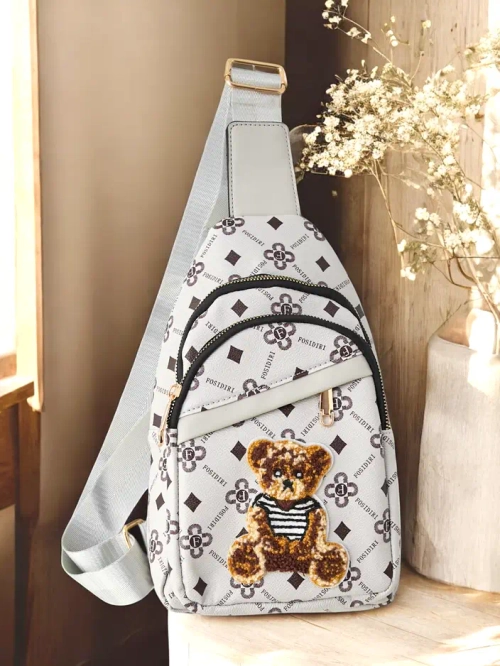 Royalfashion Small women's eco-leather backpack with a bear on one shoulder