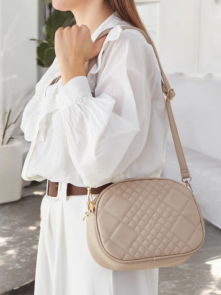 - Women's oval handbag with a zipper, made of eco-leather. The model has 3 compartments and one external pocket. Additionally, it comes with a removable, adjustable strap. Perfect for everyday use!