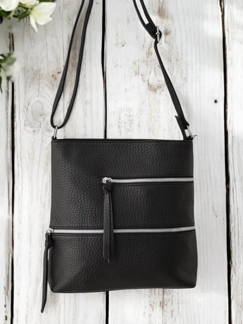 - Women's bag, zippered, made of eco leather. The model has 1 compartment, 3 internal pockets, and 2 external pockets. Additionally, an adjustable strap. Perfect for everyday use!